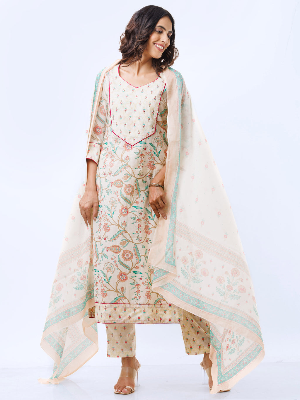 Aina Veena Set Of Kurta Pants Dupatta