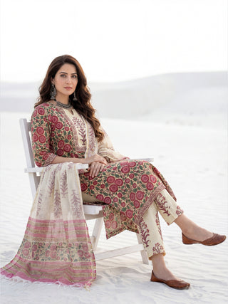 Roz Avni Set Of Kurta Pants Kota Doria Dupatta