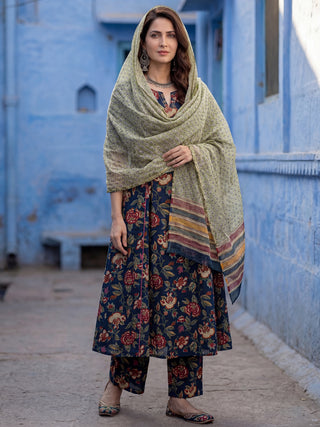 Aina Arisha Set Of Floral A-line Kurta Tulip Pants & Dupatta