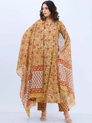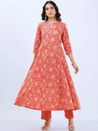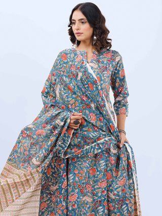 Aabida - Hand Block Printed Anarkali Kurta Palazzo Set With Dupatta - SS01F1806