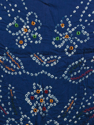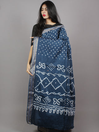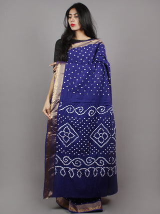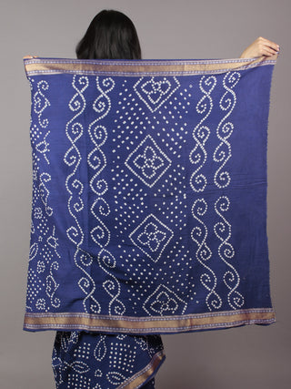 Admiral Blue White Hand Tie & Dye Bandhej Glace Cotton Saree With Resham Border - S031701327