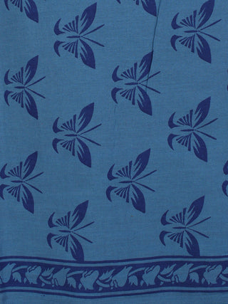 Aegean Blue Indigo Orange Hand Block Printed Cotton Suit-Salwar Fabric With Chiffon Dupatta - S1628166
