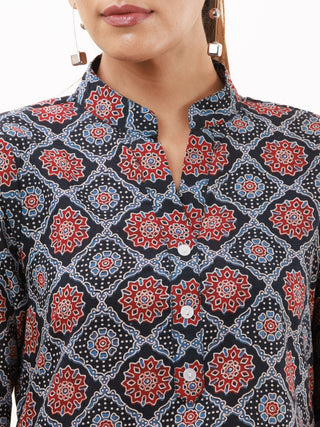 Baby Pink Red Black Blue Ajrakh Hand Block Printed Cotton Blouse Fabric - BPA073