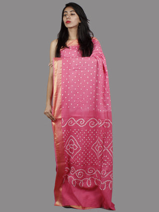 Baby Pink White Hand Tie & Dye Bandhej Glace Cotton Saree With Resham Border - S031701390