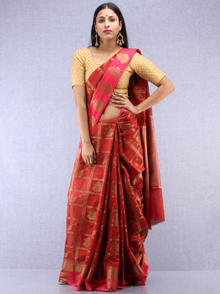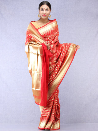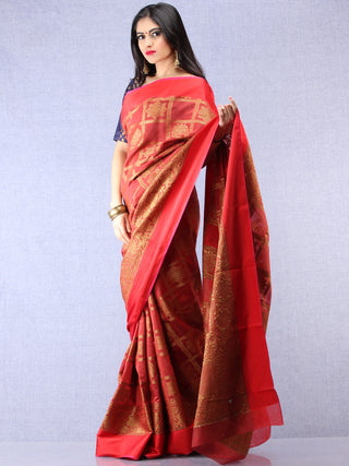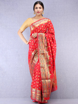 Banarasee Chanderi Silk Saree With Meenakari Work - Red & Gold - S031704428