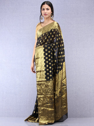 Banarasee Chiffon Saree With Golden Zari Weave - Black & Gold - S031704361