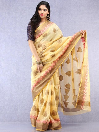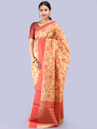 Banarasee Chanderi Saree With Resham Border & Butta - Beige & Red - S031704298