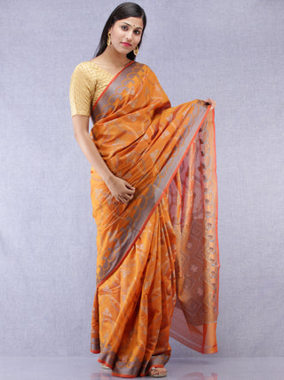 Banarasee Chanderi Silk Saree With Resham Work - Ginger Orange & Grey - S031704317