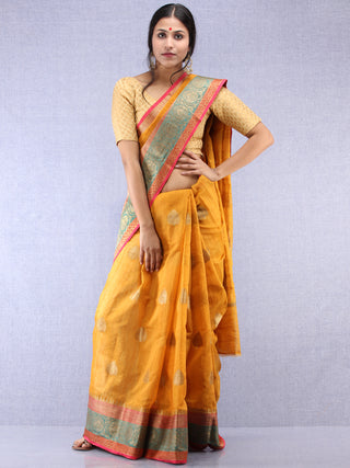 Banarasee Cotton Silk Saree With Zari Work - Mustard Pink Green & Golden - S031704365