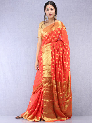 Banarasee Chiffon Saree With Golden Zari Weave - Coral & Gold - S031704356