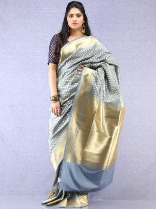 Banarasee Chanderi Silk Saree With Zari & Resham Border - Silver Grey Golden - S031704352