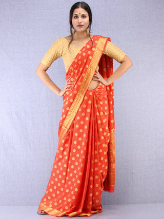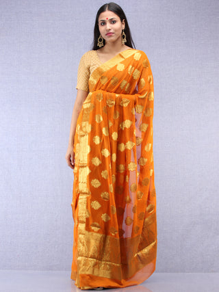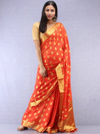 Banarasee Chiffon Saree With Golden Zari Weave - Rust Orange & Gold - S031704401