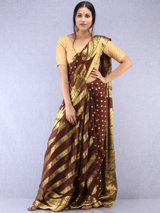 Banarasee Chiffon Saree With Golden Zari Weave - Brown & Gold - S031704357