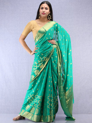 Banarasee Chiffon Saree With Golden Zari Weave - Sea Green & Gold - S031704403