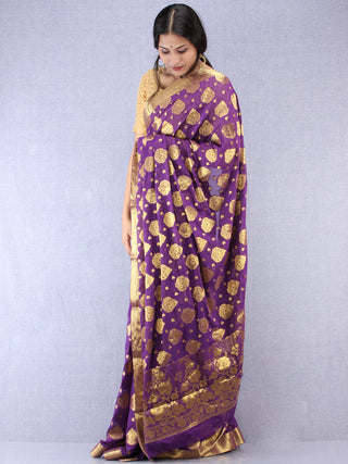 Banarasee Chiffon Saree With Golden Zari Weave - Purple & Gold - S031704359