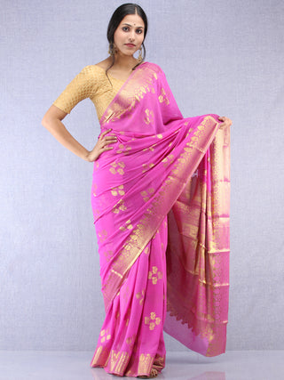 Banarasee Chiffon Saree With Golden Zari Weave - Orchid Pink & Gold - S031704360