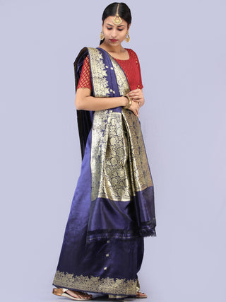 Banarasee Pure Katan Silk Handloom Saree With Zari Work - Navy Blue & Gold - S031704296