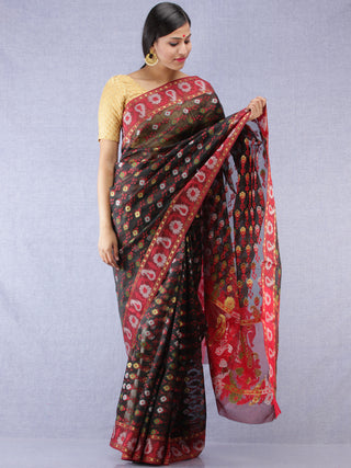 Banarasee Organza Saree With Zari & Resham Work - Black Red & Gold - S031704315