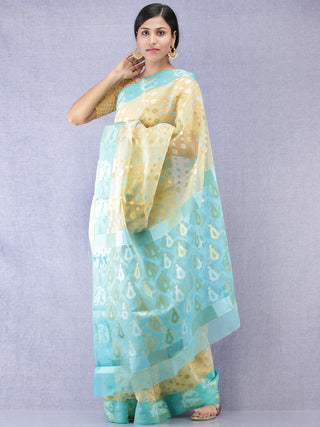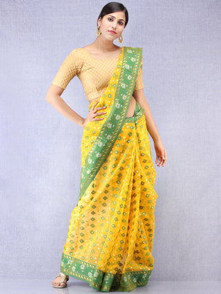 Banarasee Organza Saree With Zari & Resham Weave - Yellow Green & Gold - S031704324