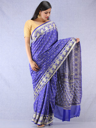 Banarasee Pure Chiffon Saree With Zari Work - Royal Blue Silver - S031704308