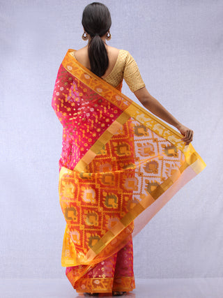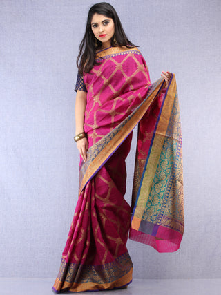 Banarasee Organza Saree With Zari & Resham Work - Magenta Yellow Gold - S031704326