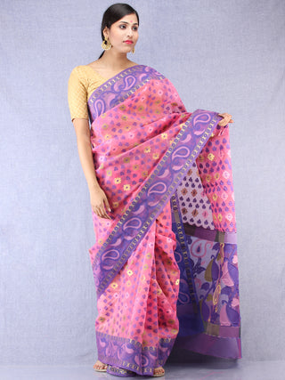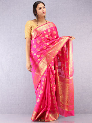 Banarasee Cotton Silk Saree With Zari Work - Onion Pink & Gold - S031704405