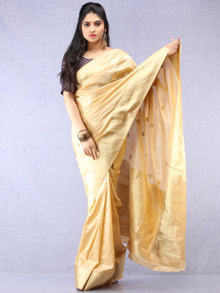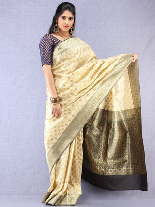 Banarasee Semi Silk Saree With Golden Zari Work - Ivory & Gold - S031704366