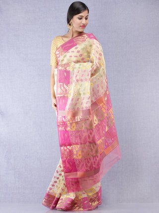 Banarasee Organza Saree With Zari & Resham Work - Ivory Pink & Gold - S031704310