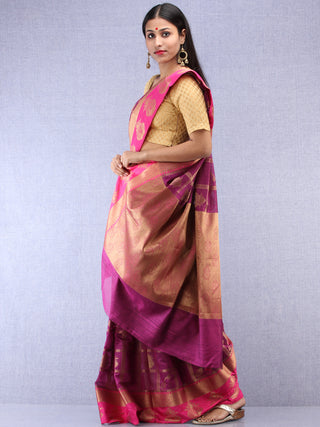 Banarasee Cotton Silk Saree With Zari Work - Peach Gold & Purple - S031704408
