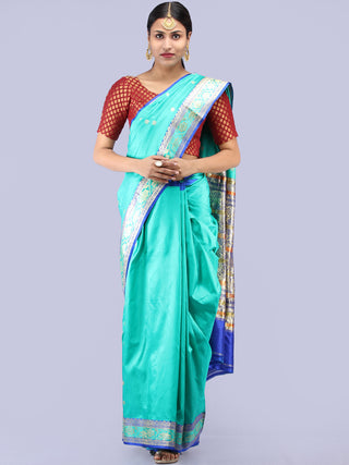 Banarasee Katan Silk Handloom Saree With Zari Work - Sea Green Blue Silver - S031704294