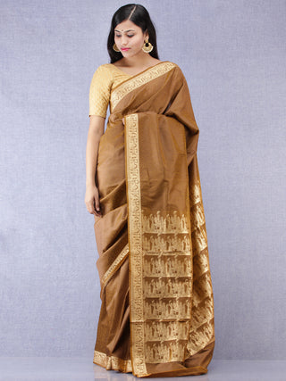 Banarasee Semi Silk Self Weave Saree With Resham Border - Peanut Brown Golden - S031704316
