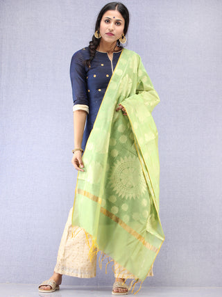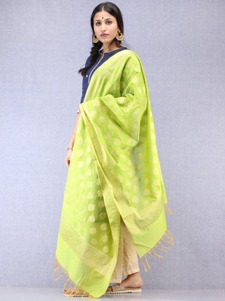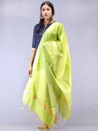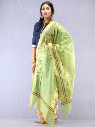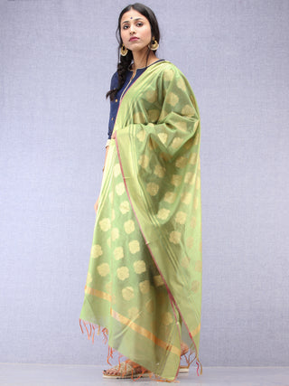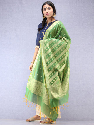 Banarasee Silk Saree With Taj Mahal Motiff & Zari Work - Green Gold - S031704319