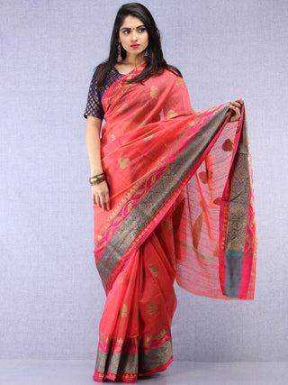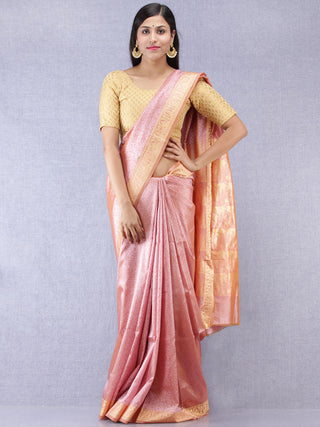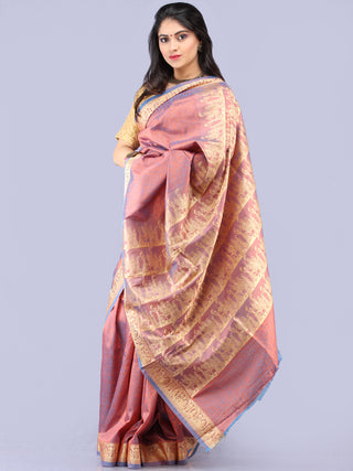 Banarasee Super Net Saree With Zari Border - Rust Copper & Pink - S031704433