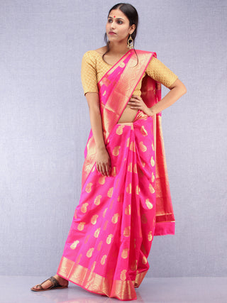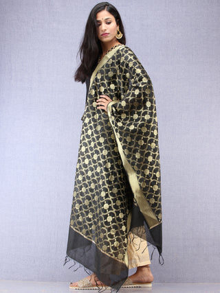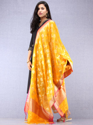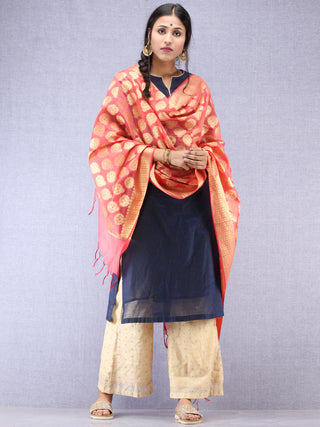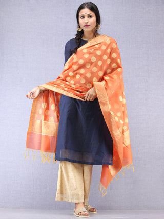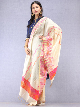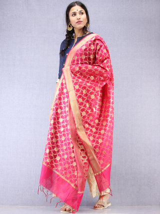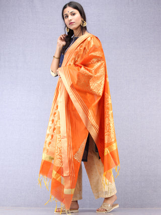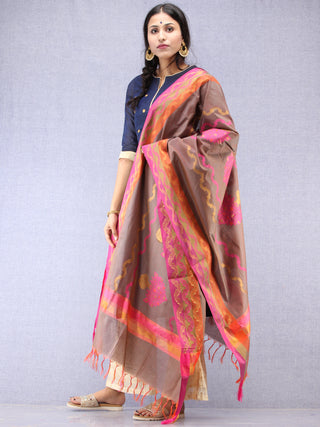 Banarasi Chanderi Dupatta With Resham Work - Light Brown Pink & Gold - D04170831