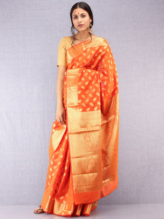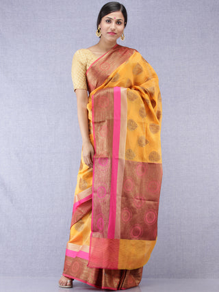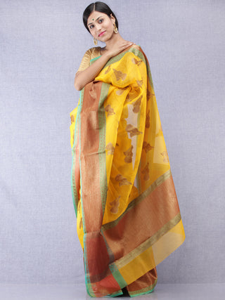 Banarasee Tissue Saree With Zari Work - Yellow Rust Copper Green - S031704313