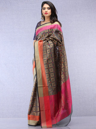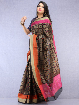 Banarasee Super Net Saree With Zari Border - Black Pink & Antique Gold - S031704441