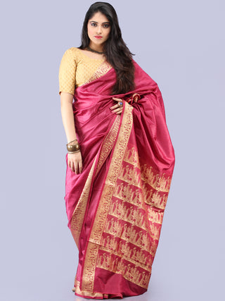 Banarasee Semi Silk Self Weave Saree With Resham Border - Plum & Golden - S031704289