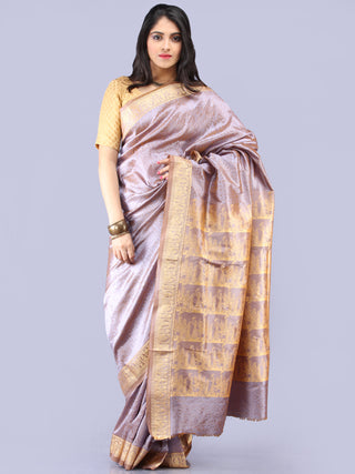 Banarasee Super Net Saree With Zari Border - Grey Pink & Antique Gold - S031704429