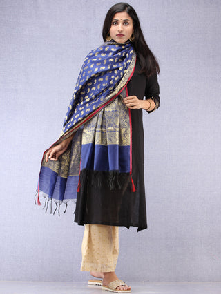 Banarasee Semi Silk Self Weave Saree With Resham Border - Dual Tone Silver & Steel Blue - S031704291
