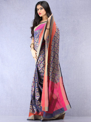 Banarasee Semi Silk Self Weave Saree With Resham Border - Blue Pink Gold - S031704293