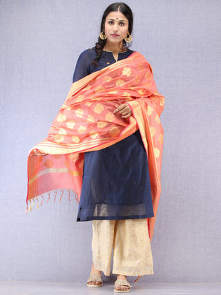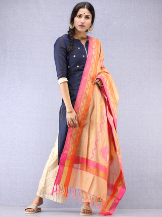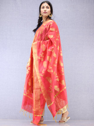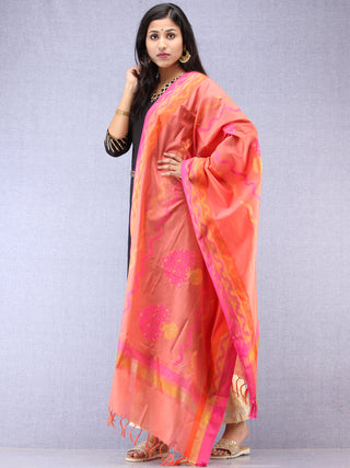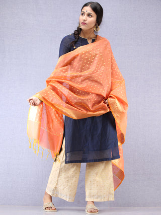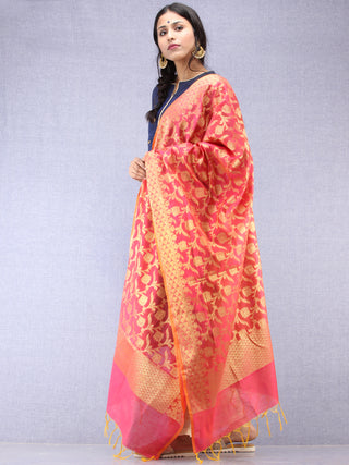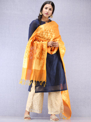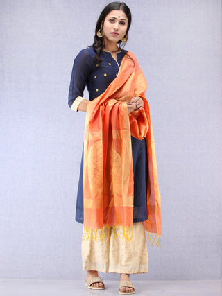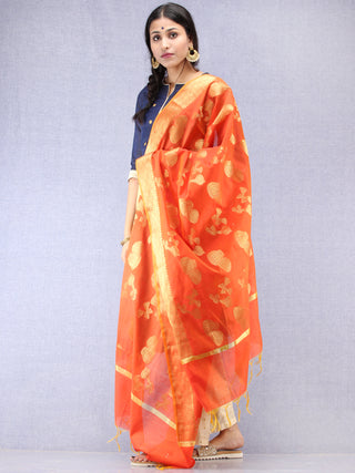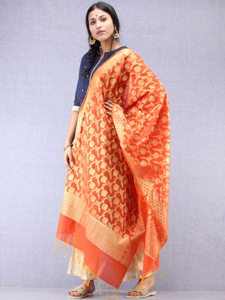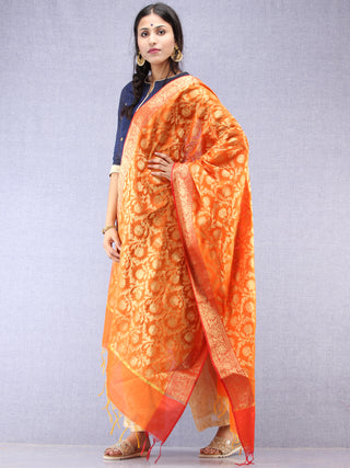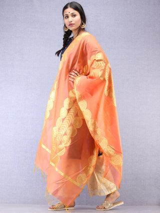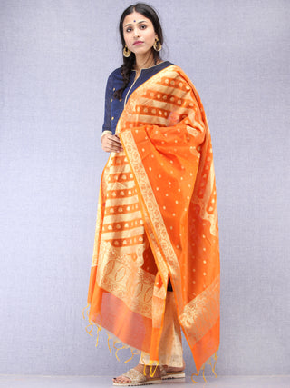 Banarasi Chanderi Dupatta With Zari Work - Orange Light Green & Gold - D04170824