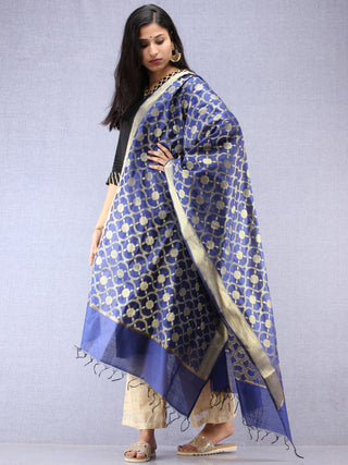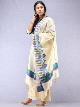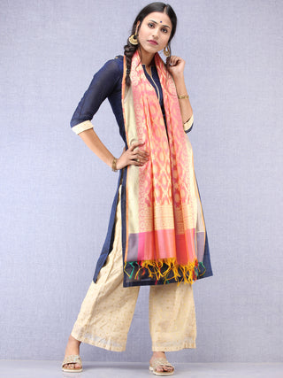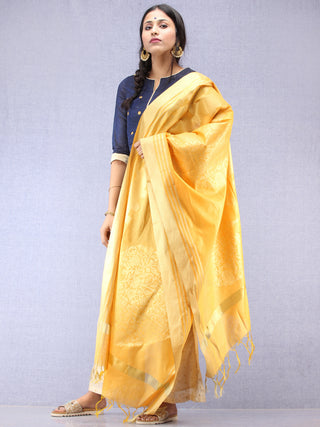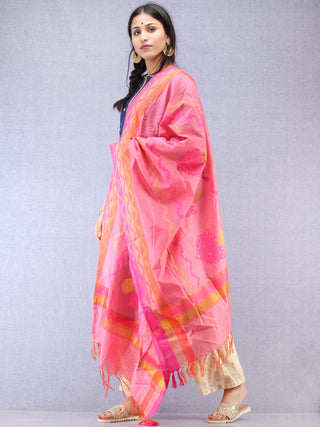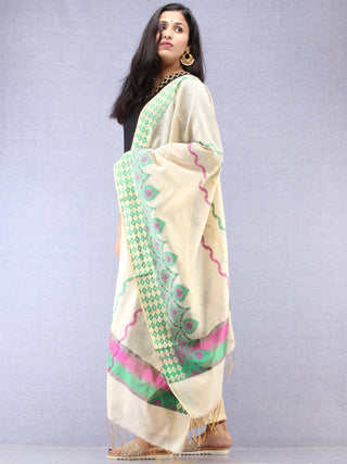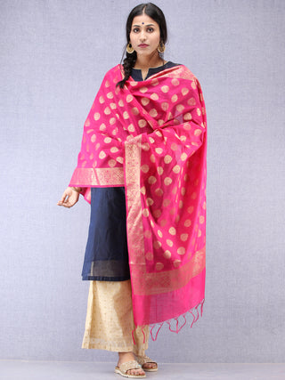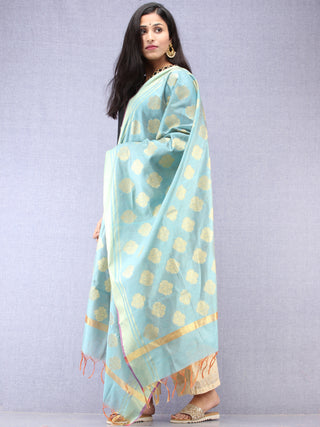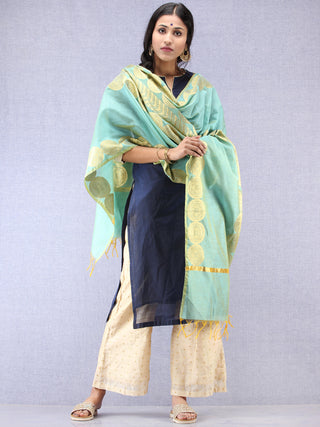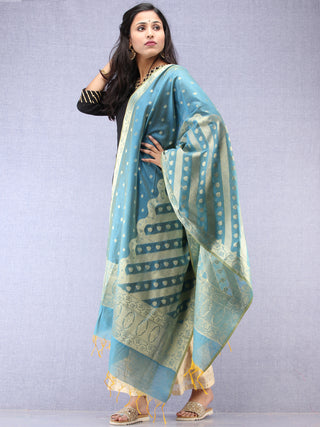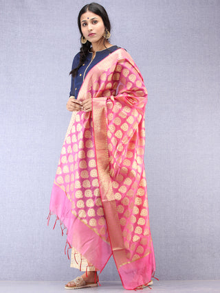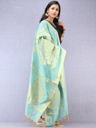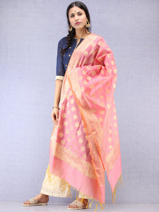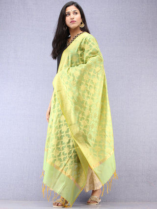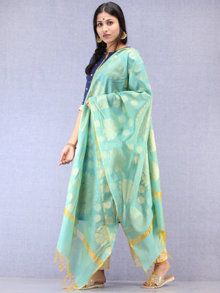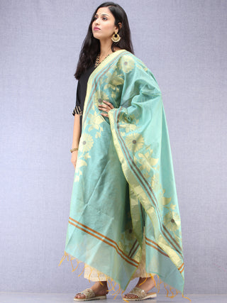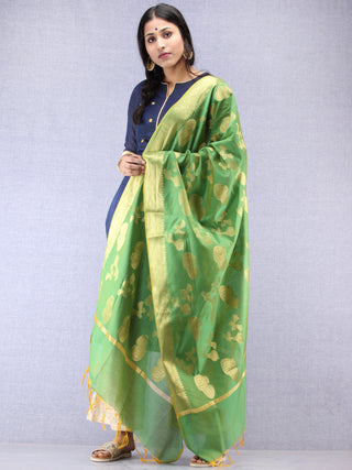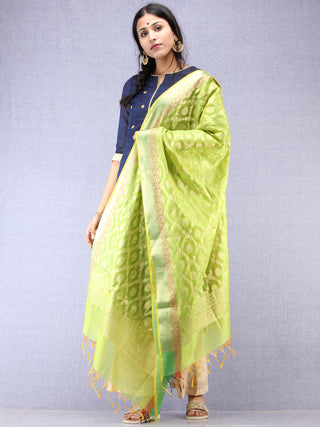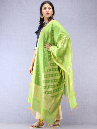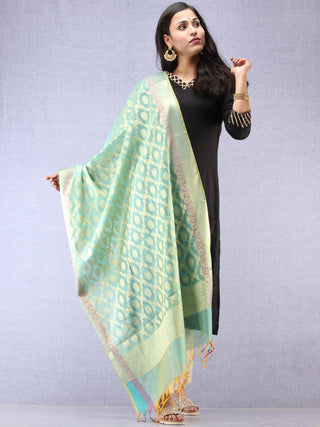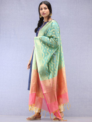Banarasi Chanderi Dupatta With Zari Work - Light Green Pink & Gold - D04170840