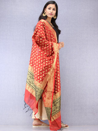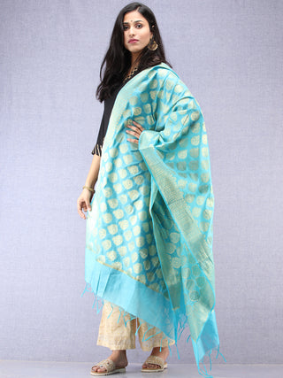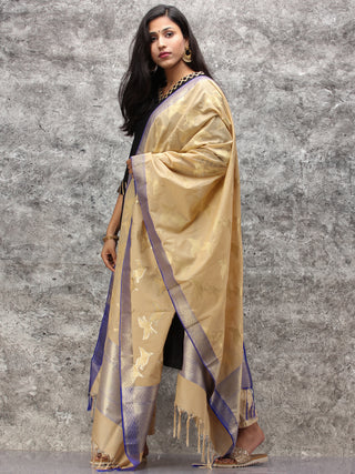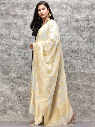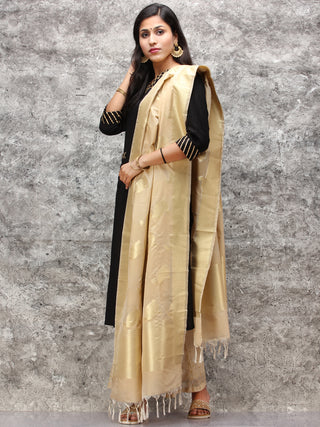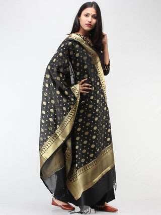 Banarasi Chanderi Jacquard Dupatta With Zari Work - Black & Gold - D04170912