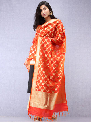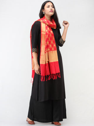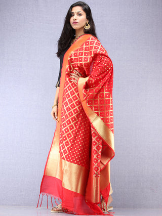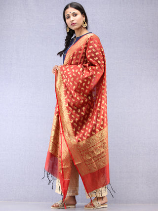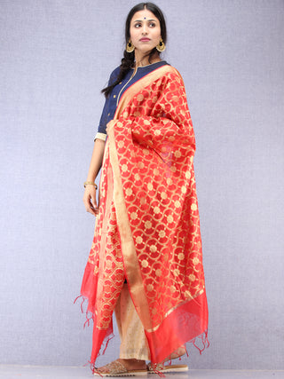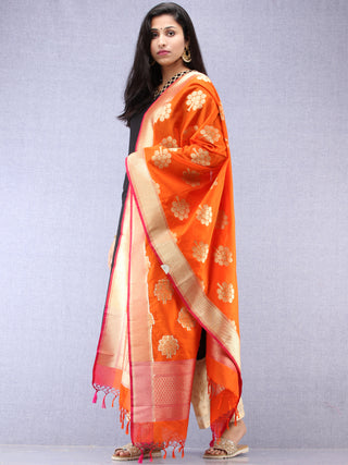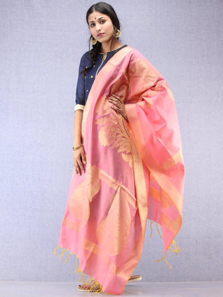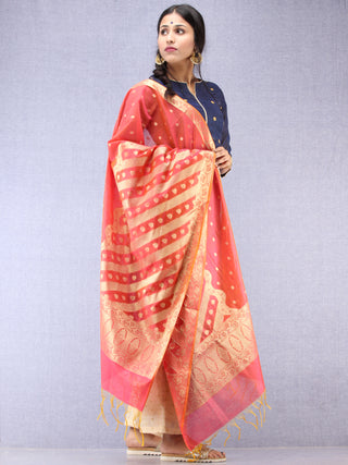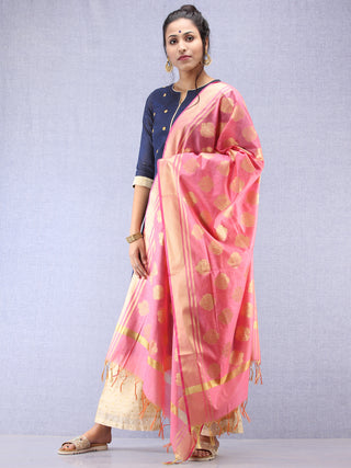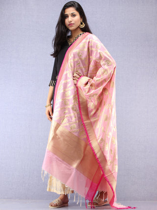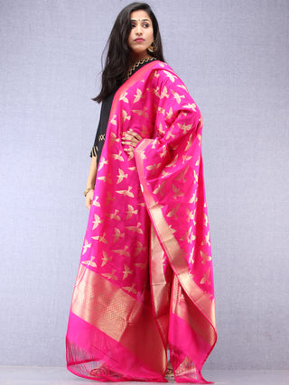 Banarasi Chanderi Jacquard Dupatta With Zari Work - Hot Pink & Gold - D04170914