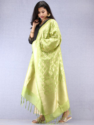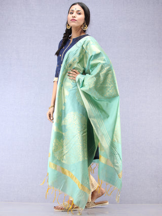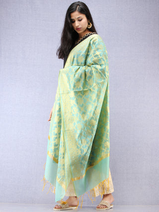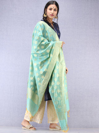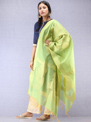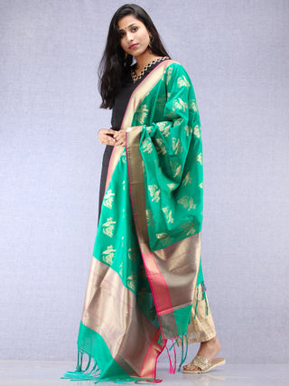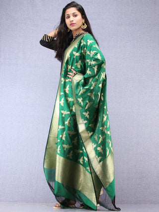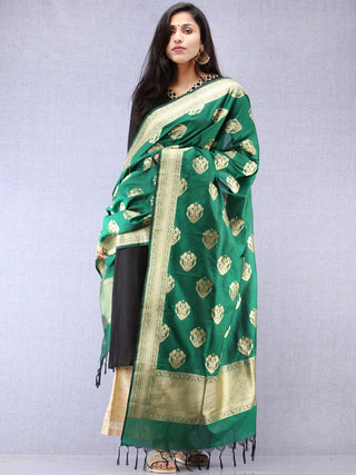 Banarasi Kanni Silk Dupatta With Zari Work - Bottle Green & Gold - D04170871