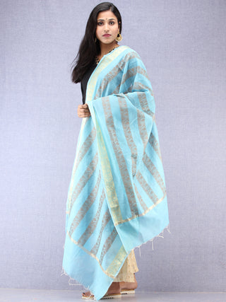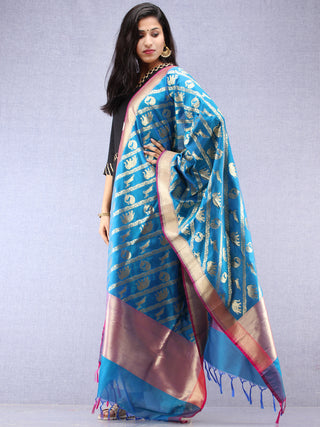 Banarasi Kanni Silk Dupatta With Zari Work - Blue Hot Pink & Gold - D04170875