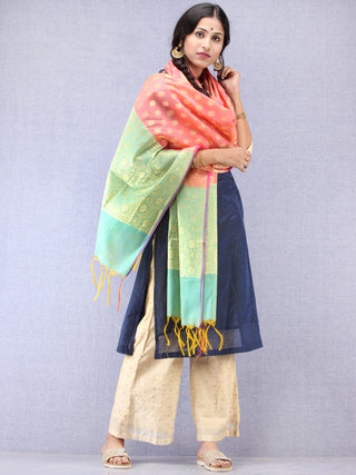Banarasi Kanni Silk Dupatta With Zari Work - Green Hot Pink & Gold - D04170880