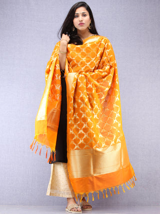 Banarasi Kanni Silk Dupatta With Zari Work - Mustard Yellow & Gold - D04170879
