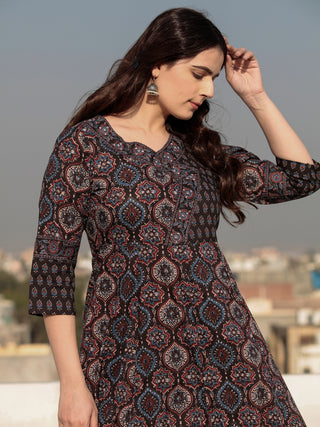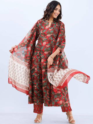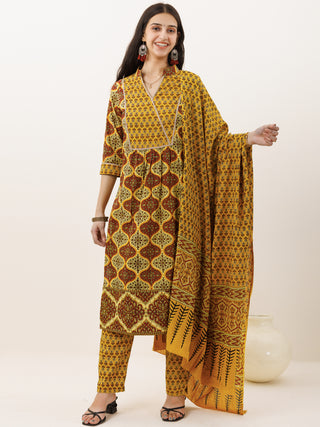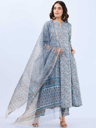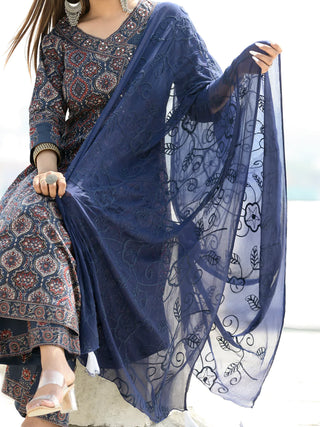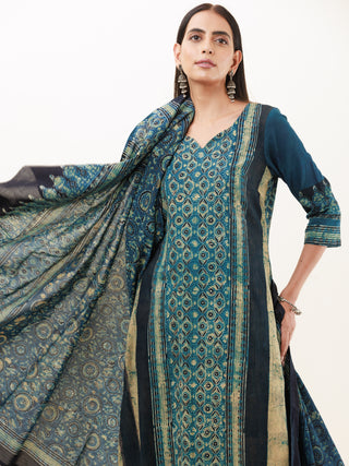 Ajrakh Amara - Set of Anarkali Kurta Palazzo & Dupatta - KS131A2513D