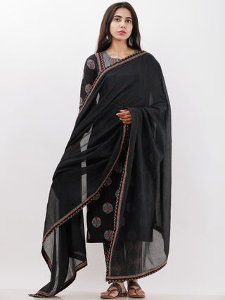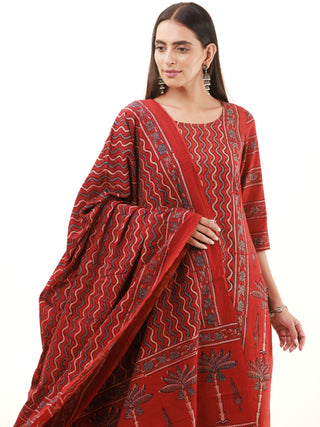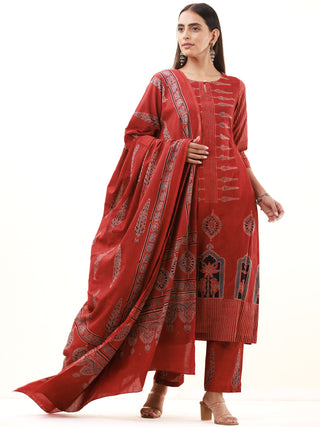 Ajrakh Shifat - Set of Straight Kurta Pants & Dupatta - KS47N2513D